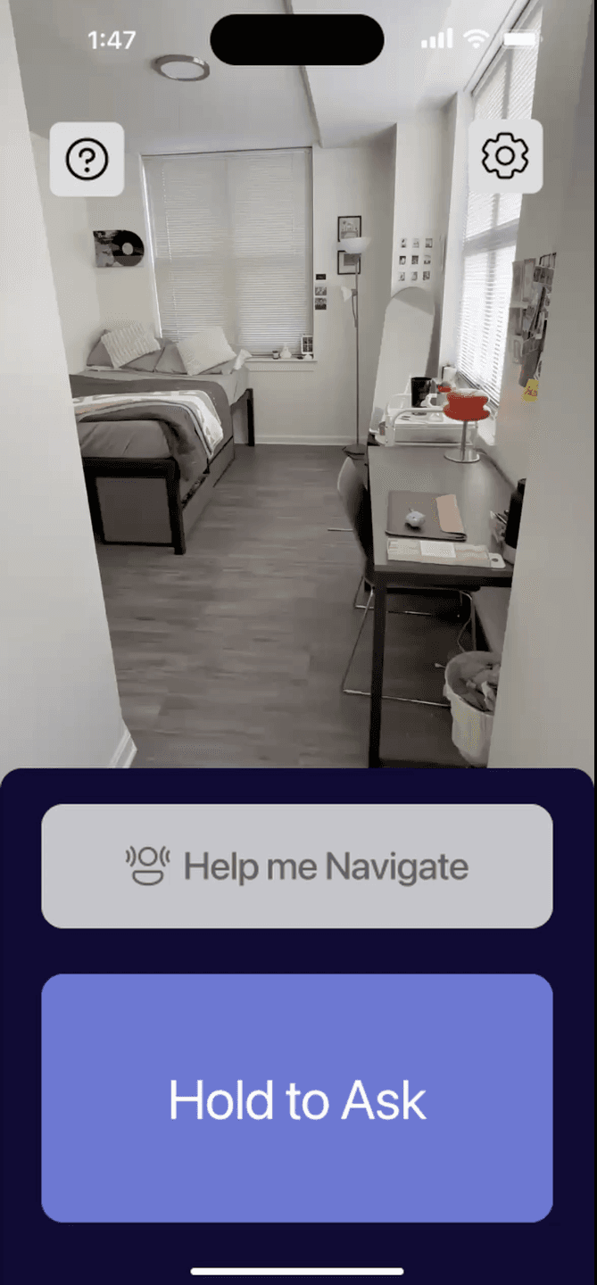 Uses spatial audio and haptics to guide users toward doors and paths while avoiding obstacles. The AI voice provides quick, contextual cues to keep users oriented with minimal effort.