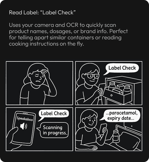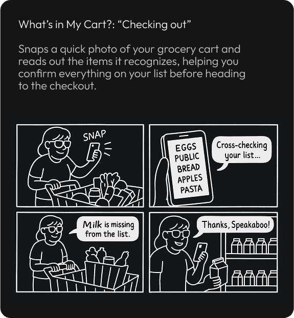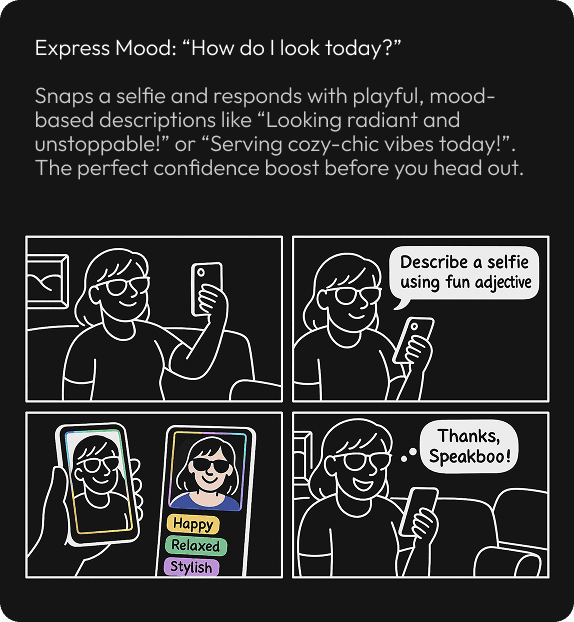 Speakaboo is a mobile app that helps blind and low vision users understand their surroundings using a simple voice-based interface.