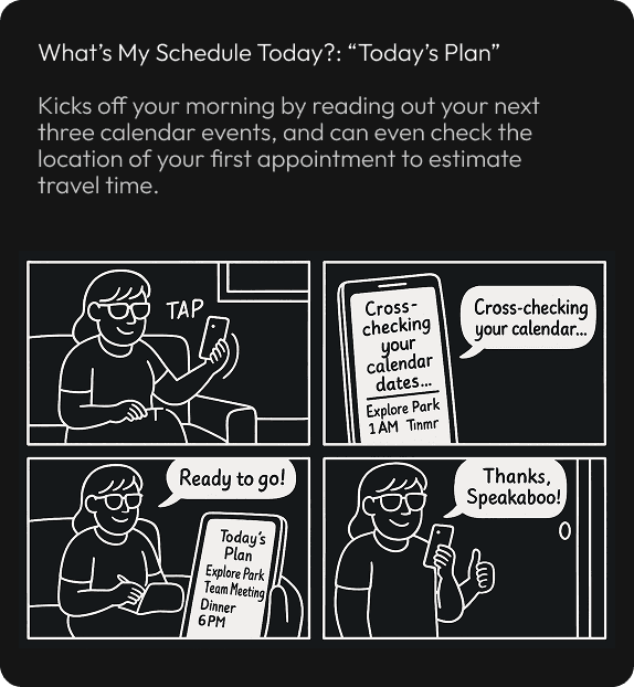 Guiding Speakaboo’s timing and responsiveness: announce when needed, confirm when aligned, quiet when safe balancing guidance, freedom, and confidence with minimal cognitive load.